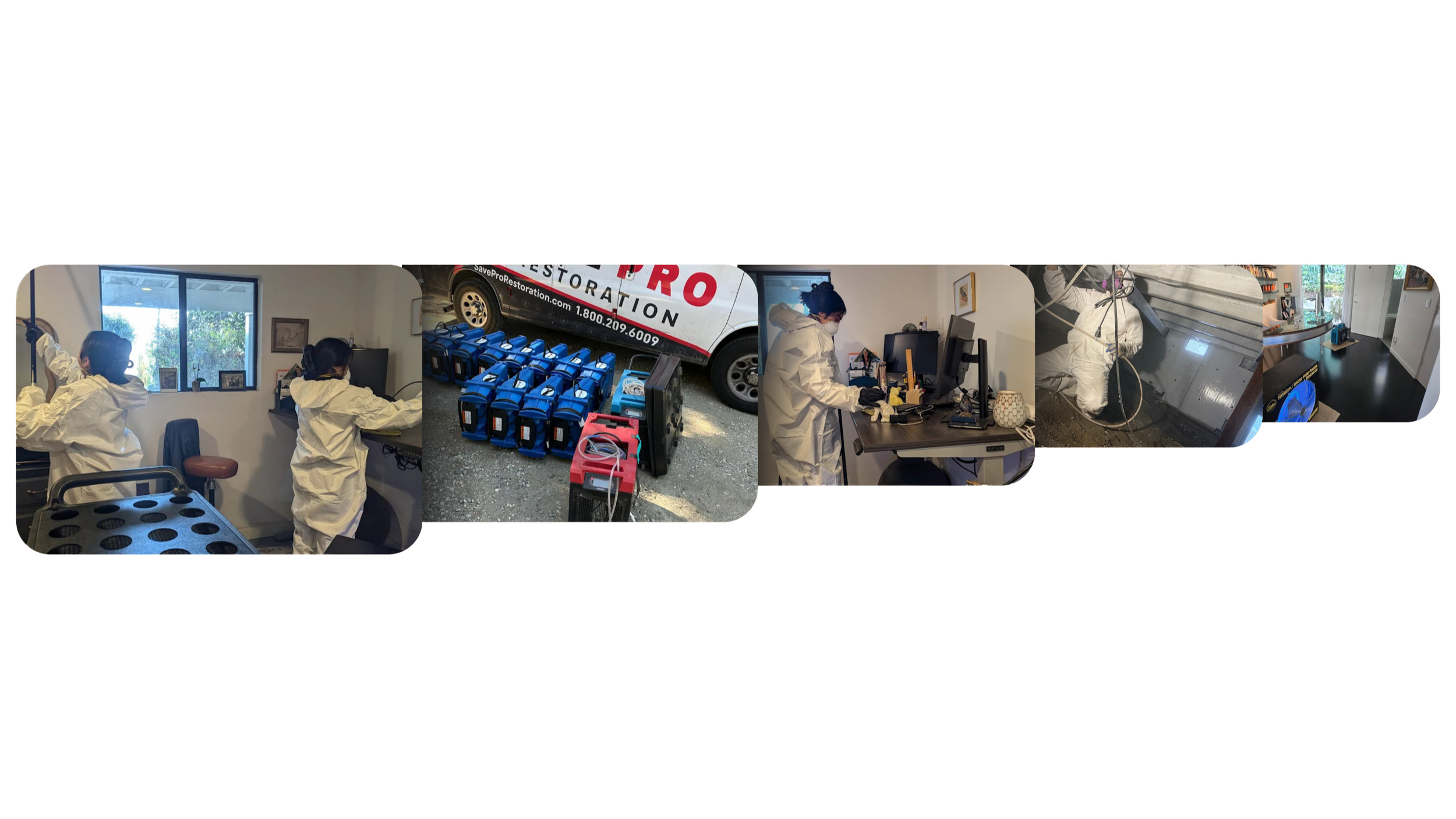 We use professional-grade inspection tools, extraction systems, air movers, and dehumidifiers to ensure thorough restoration.